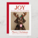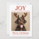 Tarjeta elegante y divertida de felicitación navideña con foto de perro para los "de dos patas" de un negocio de paseo de perros, con una adorable cachorra labradora con cuernos y acebo.