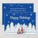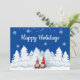 Desea a tus amigos y familiares unas Felices Fiestas con esta tarjeta de Navidad que presenta dos adorables Gnomos parados en los árboles nevados. La parte trasera de la tarjeta incluye tu mensaje personalizado de Navidad y nombre. ¡Perfecto para amigos, familiares y todos en tu lista!