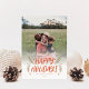 Elegante, elegante y personalizado; con tu foto con un estilo manuscrito acentuado por hojas de pino y bayas dibujadas a mano. La parte trasera tiene un patrón de nieve festivo.