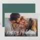 Felices Fiestas Letra Moderna Sencilla Una Foto Tarjeta de vacaciones presenta una foto completa, con texto blanco superpuesto en un estilo de letra divertido.