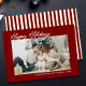 Tarjeta de foto de vacaciones moderna en rojo y blanco con un diseño de foto, ideal para parejas o familias que buscan una forma personalizada y elegante de compartir saludos de temporada. El diseño cuenta con un borde rojo atrevido que rodea su foto de vacaciones personalizada, creando un aspecto limpio y refinado perfecto para mostrar un retrato familiar preciado. En la parte inferior, agregue un mensaje personalizado y año, lo que facilita la personalización para cualquier familia o pareja. La parte posterior de la tarjeta muestra rayas rojas y blancas dibujadas a mano con estilo, lo que agrega un toque final elegante y coherente. Esta tarjeta de vacaciones festivas se adapta a gustos modernos y minimalistas, al tiempo que ofrece una presentación cálida y sincera. Perfecta para enviar deseos de Navidad, Año Nuevo o vacaciones de invierno con una estética contemporánea y atemporal, este diseño es visualmente atractivo y altamente versátil para una amplia gama de destinatarios y estilos de familia. Disponible como tarjetas impresas o descarga digital instantánea.