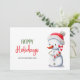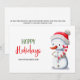Tarjeta de felicitación navideña empresarial adorable con una ilustración de un muñeco de nieve lindo que sostiene un bastón de caramelo grande y un sombrero de Santa, ideal para los saludos navideños de su empresa y la apreciación del cliente. Personalice el texto para agregar su propio mensaje sincero. Ilustrado y diseñado por Patricia Alvarez.