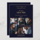 Felices Fiestas Tarjeta de Anuncio de Boda Clásica Simple Azul Marino y Dorado Falso con 4 Fotos Múltiples y Sobre.
