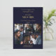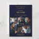 Felices Fiestas Tarjeta de Anuncio de Boda Azul Marino y Dorado Falso Simple Clásica con 4 Fotos Múltiples para Guardar la Fecha con Sobre.