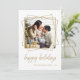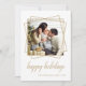 Este diseño presenta una foto de personalizable rodeada de marcos geométricos dorados. Debajo, las palabras "fiestas felices" aparecen en elegantes letras de guiones. Personalice fácilmente la tarjeta reemplazando la imagen de ejemplo con su propia foto cuadrada y añadiendo su nombre y el año en el tipo de letra de dorado serif.