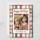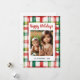 Envía cálidos deseos navideños con esta tarjeta de felicitación navideña festiva que presenta clásicos patrones de cuadro escocés y gingham. Perfecta para familiares, amigos o compañeros de trabajo, estas tarjetas traen un toque de encanto vintage a tus saludos navideños. Tanto el texto como la foto son totalmente personalizables: personaliza con tu propio mensaje, nombres o foto familiar para crear un recuerdo navideño único.