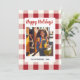 Envía cálidos deseos navideños con esta tarjeta de felicitación navideña festiva que presenta clásicos patrones de cuadros y gingham. Perfecta para familiares, amigos o compañeros de trabajo, estas tarjetas traen un toque de encanto vintage a tus saludos navideños. Tanto el texto como la foto son totalmente personalizables: personaliza con tu propio mensaje, nombres o foto familiar para crear un recuerdo navideño único.