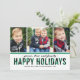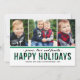 La tarjeta de felicitación moderna incluye tres (3) fotos y texto blanco en negrita que se puede personalizar con su saludo preferido, apellido, miembros de la familia y año. Cuenta con un patrón rústico de cuadros de búfalo verde y negro en los lados delantero y trasero de la tarjeta. Crédito de las fotos: Two Fish Photography www.twofishphoto.com