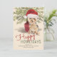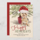 Envíe sus saludos navideños este año con este adorable cachorro de agua Yorkshire Terrier en un sombrero de Santa debajo de un árbol de Navidad iluminado que incluye texto rojo y verde con las palabras "Felices Howlidays" ambientadas en la tipografía moderna. Personalízalo con tu(s) saludo(s) y nombre(s). Un fondo rojo de coordinación está en la parte posterior de la tarjeta.
