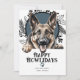 Feliz Día de los Amantes Tarjeta de vacaciones del Mascota de perro pastor alemán Navidades de perro de Ricaso - diseñada con una maravillosa tipografía Texto feliz de Howlidays al frente - una divertida tarjeta de vacaciones con temática de perro, tu peludo miembro de la familia merece enviar sus propios saludos de vacaciones .. fácil de agregar tu propio texto y foto - con un divertido y audaz patrón de huella de pata a la parte trasera diseñada en blanco y negro