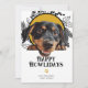 Felices Howlidays tarjeta de vacaciones de Navidades de perros Mascotas de perros negros y morados de raza negra austriaca de Ricaso - diseñada con una maravillosa tipografía Happy Howlidays text to front - una divertida tarjeta de vacaciones con temática de perro, tu peludo miembro de la familia merece enviar sus propios saludos de vacaciones .. fácil de agregar tu propio texto y foto - con un divertido y audaz patrón de impresión de pata en la parte trasera