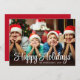 Tarjeta de Navidades modernos con "Felices Fiestas" mostrada en un elegante guión en blanco sobre la foto