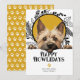 Feliz Día de los Amantes Tarjeta navideña del Mascota del perro de Cairn Terrier de Ricaso - diseñada con una maravillosa tipografía Happy Howlidays to front - una divertida tarjeta de vacaciones con temática de perro, tu peludo miembro de la familia merece enviar sus propios saludos de vacaciones .. fácil de agregar tu propio texto y foto - con un divertido y audaz patrón de huellas de pata en la parte trasera diseñada en blanco y negro