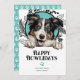Feliz Día de Amanecer Collie Sheepdog Mascota Perro Navidades tarjeta de vacaciones de Ricaso - diseñada con una maravillosa tipografía Feliz Día de los Amanecimientos al frente - una divertida tarjeta de vacaciones con temática de perro, tu peludo miembro de la familia merece enviar sus propios saludos de vacaciones .. fácil de agregar tu propio texto y foto - con un divertido y audaz patrón de huella de pata a la parte trasera diseñada en blanco y negro