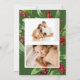 Festividad berry botánica, tarjeta multifoto de vacaciones. Felices Fiestas en escritura verde. Características de la tarjeta, marcos de acuarela elegantes de vegetación y bayas con fondo de color verde coordinado. Una foto vertical en la parte delantera y dos fotos horizontales en la parte posterior.