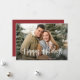 Esta simple y moderna tarjeta de fotos navideña muestra tu foto favorita de familia o boda al otro lado del frente, con un elegante superpuesto de texto blanco que dice "Felices Fiestas".