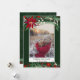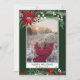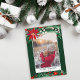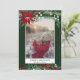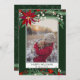 Envíe sus saludos de Navidad con esta moda y diseño moderno de Navidades verdes, rojos, de invierno con una poinsettia roja pintada a mano bonito, ramas verdes con nieve blanca, agregue su foto con un moderno borde geométrico sobre verde oscuro. Todo el color del texto es editable.