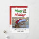 Navidades tarjeta plana con vacaciones felices en texto verde y rojo 3D y un oso de peluche. Personalizar con su propia foto y texto. Disponible en varios estilos y tamaños.