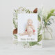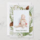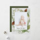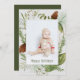Feliz feriado de invierno Greenery Watercolor de agua de foto vertical tarjeta de vacaciones. Personalice el saludo frontal y posterior.