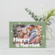 tarjeta de Feliz Navidad y Año Nuevo foto de recién casados retro verde, tarjeta de Navidad de doble cara, en la parte posterior mensaje de vacaciones.