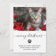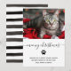 Esta sencilla y bonita tarjeta de Feliz Navidad de tu gato o gatito incluye un guión escrito a mano en blanco y negro que dice "navidades míseros" y una tira de pata linda, junto con la foto personal de tu mascota. En la parte posterior de la tarjeta se ven rayas de color agua en blanco y negro.