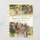 Celebre la Navidad con esta tarjeta de fiestas llena de alegría y que incluye 3 fotos y su texto personalizado. Cambie fácilmente la frase Felicidades en las fiestas por su propio texto personalizado. La parte trasera cuenta con franjas doradas festivas falsas. ¡Su familia y amigos apreciarán esta tarjeta de Navidad!