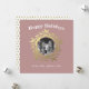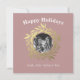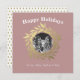 Diseño moderno de vacaciones festivas púrpura con el texto 'Felices Fiestas' y una corona dorada chic en un fondo azul. Simplemente agregue su(s) nombre(s) y su foto. La parte trasera de la tarjeta tiene un patrón de árbol de Navidad dorado en un fondo blanco. Si necesita ayuda o productos coincidentes, por favor contáctenos a través de nuestra tienda.