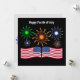 Tarjeta Festiva Feliz 4 de julio, fuegos artificiales y bandera