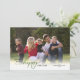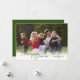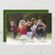 Esta tarjeta fotográfica de Año Nuevo ofrece una foto horizontal que llena la parte delantera de la tarjeta. El mensaje "Deseándote un feliz año nuevo" aparece en negro y verde resaltando la palabra "feliz" en un guión elegante. La parte trasera de la tarjeta es verde. Fotografía © Storytree Studios, Stanford, CA
