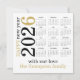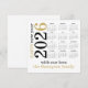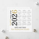 Feliz Año Nuevo 2026 Calendario Blanco Oro. Disponible digitalmente o impreso. Una manera moderna y elegante de enviar tus saludos de año nuevo - y práctica para tus destinatarios también! Con el año rotado y a la izquierda con el 5 en oro y el resto del texto en negro.