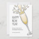 Tarjeta de Año Nuevo con burbujas de una brillante copa de champán para este fiesta de Año Nuevo en un estilo simple, fresco y moderno.