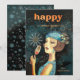 Envía esta tarjeta de Feliz Año Nuevo con estilo retro vintage con una mujer sosteniendo un vaso para brindar por el AÑO NUEVO a tus amigos o familiares. Este es un diseño pintado a mano . Al comprar esta tarjeta apoyas al creador original. ¡Feliz AÑO NUEVO!