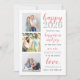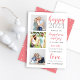 Esta moderna tarjeta de felicitación envía deseos de felicidad y alegría en el año nuevo y también sirve como anuncio de embarazo con la noticia de que su familia está esperando en el año nuevo. Incluye tres espacios de fotos cuadrados para fotos de maternidad y / o imágenes de ultrasonido con un patrón de puntos de confeti en la parte posterior. La paleta de colores rosa, gris y blanco se puede modificar.