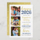 Esta elegante tarjeta de saludo envía deseos de felicidad y alegría en el nuevo año y también se duplica como una invitación de embarazo con las noticias que su familia espera para el nuevo año! Incluye tres espacios de fotos cuadradas para fotos de maternidad y / o imágenes de ultrasonido con un patrón de punto confetti en la parte posterior. Se pueden modificar los colores azul marino, oro, gris y blanco.