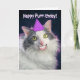 Tarjeta Festiva Feliz cumpleaños gracioso gato con sonrisa humana