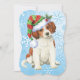Celebra la temporada navideña con un adorable cachorro de Kooikerhondje vestido con un gorra y una bufanda en medio de copos de nieve con las palabras: ¡Feliz cumpleaños por la espalda! Ideal para los amigos y familiares amantes de Kooiker.