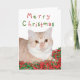 Shorthair estadounidense crema y blanca (en realidad un cabello largo norteamericano cuyo pelo no llevaba tan esencialmente un Shorthair norteamericano) se hace cómodo en rojo y verde confetti y desea una Feliz Navidad a todos los amantes del gato tarjeta de saludo de vacaciones