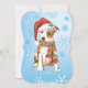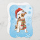 Celebra la temporada de fiestas con un adorable cachorro norteamericano Staffordshire Terrier vestido con un sombrero de Santa y una bufanda en medio de copos de nieve con las palabras, ¡Feliz Amanecer en la espalda! Ideal para los amigos y familiares amantes del personal de Am.