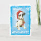 Envíen saludos de Navidad con esta tarjeta de un adorable cachorro Smooth Fox Terrier usando un sombrero de Papá Noel y una bufanda a rayas entre copos de nieve y las palabras, ¡Feliz cumpleaños! Ideal para amigos y familiares amantes de SFT. ¡Que tengas un feliz cumpleaños!