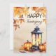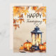 Feliz Día de Acción de Gracias boho calabaza cosecha granos linterna con una vela rústico color agua patrón de tarjeta de saludo de vacaciones descarga digital instantánea.