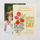 Tarjeta de felicitación personalizada del Día de la Madre, con tipografía dorada elegante que deletrea para nuestra mamá, ¡la mejor mamá del mundo! Flores silvestres modernas rojas, naranjas y moradas. Sube tu foto favorita en la parte trasera.