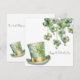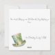 Trébol verde cuelga de la parte superior de esta tarjeta del Día de San Patricio. La parte frontal presenta un sombrero de duende dorado y verde con una banda dorada y Feliz Día de San Patricio en una elegante letra. El reverso de la tarjeta presenta el sombrero de duende con espacio para tu bendición irlandesa o deseos del Día de San Patricio y la firma de tu familia. Personaliza la parte trasera de la tarjeta con tus deseos. ¡Disfruta tu Día de San Patricio!