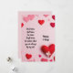 Feliz día de San Valentín con corazones rosas y rojos junto con mensajes.