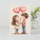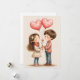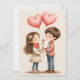Celebra el amor con esta adorable tarjeta del Día de San Valentín que presenta una dulce ilustración de una joven pareja sosteniendo globos con forma de corazón y una delicada flor. ¡Perfecta para expresar tu amor y afecto a alguien especial!