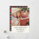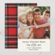 ¡Feliz días de Challah! Esta simple tarjeta moderna de Hanukkah presenta tu foto favorita junto a un mensaje personalizado de máquina de escribir, así como una ilustración caprichosa de pan challah y rama botánica. En la parte posterior hay un patrón cálido de cuadros rojo leñador.