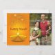 Una encantadora tarjeta de foto de Diwali con una lámpara diya dorada sobre fondo dorado con fuegos artificiales.