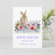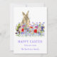 Tarjeta Festiva Feliz fiesta de Pascua, conejo y flores silvestres
