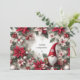 Tarjeta Festiva Feliz Gnome de Navidad, Poinsettias y Holly