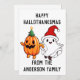 Lindo fantasma y calabaza caminando de la mano hacia HalloGraciasNavidad. Personaliza el texto para enviar a todos tus amigos y familiares queridos