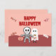 Tarjeta Festiva Feliz Halloween, lindo esqueleto y fantasma con du